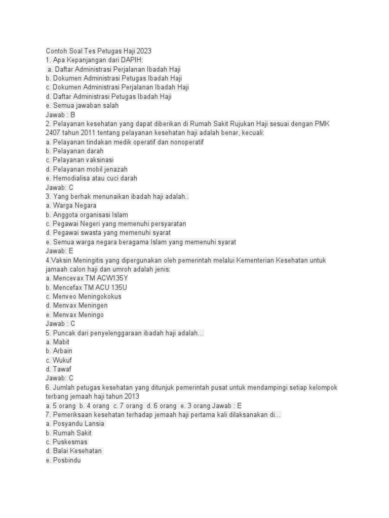 Tidak heran jika banyak calon peserta berlomba-lomba mencari 25 contoh soal kompetensi petugas haji sebagai bahan belajar utama.